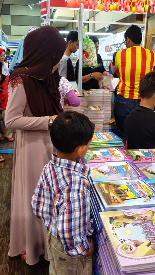 Padat , Penuh , Ramai dengan orang-orang . Biasa lah kan untuk yang ulat buku macam syasya confirm tak nak lepaskan peluang macam ni. Kalau dalam karangan bahasa melayu , membawa anak-anak ke pesta buku adalah salah satu langkah untuk memupuk semangat membaca dalam kalangan anak-anak . Jadinya mulalah langkah kita untuk mencari buku dan novel yang memikat hati. masuk je dewan tu banyak sangat booth dan rasa macam nak borong semua.